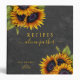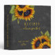 Editable text recipes cookbook binder featuring rustic big sunflowers bouquets on a dark grey charcoal chalkboard background. Easy to personalize with your details. ++++++++++ This recipe book can be a beautiful keepsake personalized gift for a bride, wedding, anniversary, birthday, Christmas, or a cookbook organizer for your own kitchen.