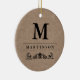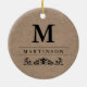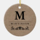 This classic ornament features a faux kraft paper background, with your monogram and last name in black and decorated with a flourish.