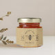 Custom-designed honey jar wedding favors featuring "meant to bee" lovely bee design with couple's initials and wedding date.