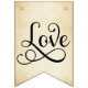 Custom Mr. and Mrs. wedding bunting banner features a letter that can be customized with the bride and groom's married last name initial. Banner features Love in script writing along with hearts accents. Black print on rustic antique parchment textured style background.