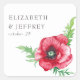 Rustic Elegant Watercolor Script Red Poppy Wedding Square Sticker
