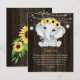 Rustic Elephant Sunflowers Lights Girl Baby Shower Invitation