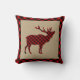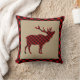 Rustic Elk Burlap and Red Plaid Throw Pillow