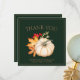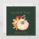 Rustic Emerald Green Pumpkin Wedding Thank You Card. Thank your guests with this elegant emerald green wedding card featuring a white pumpkin, fall foliage, and rustic harvest florals. A cozy and heartfelt design, perfect for barn weddings, jewel-toned celebrations, and autumn receptions with countryside charm.