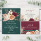 Elegant floral wedding menu featuring romantic watercolor flowers in burgundy, peach, and ivory over a deep emerald green background. Perfect for rustic, boho, or fall wedding receptions. Personalize with your own dishes, couple’s names, and wedding date. For help or custom edits, email bpkolman@gmail.com