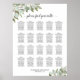 This 20 wedding seating chart is rustic and charming yet stylish and elegant. It features table assignments for 200 guests with 10 seats per table. The hand painted watercolor design includes sprigs of eucalyptus leaves, greenery and foliage in shades of mint, moss, and sage green. The title is written with lacy script calligraphy and reads: Please find your table, and the names of the couple and wedding date appear at the bottom. Wonderful way to help your guests find their seats while adding elegance and style to your reception.