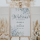 Gorgeous, rustic signage for your special day. This is an original design featuring eucalyptus and coordinating foliage in soft dusty blues and greens. Easy to customize with your unique information.