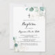 Rustic Eucalyptus Gold Floral Calligraphy Baptism Invitation