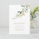 Rustic save the date cards feature faux gold foil leaves, watercolor eucalyptus botanical greenery and modern chic script and font, elegant and simple, great for modern rustic wedding, botanical garden wedding and boho country wedding.