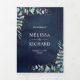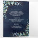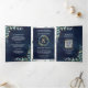 Rustic Eucalyptus Gold Navy Blue QR Code Wedding Tri-Fold Invitation
