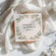 This design showcases a charming rustic style, with sage green eucalyptus leaves beautifully painted in watercolor and arranged around elegant faux gold rings. The center offers space to personalize with your names and wedding date.