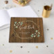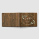 This rustic and trendy wedding or bridal shower guest book features romantic watercolor eucalyptus leaves and foliage on a faux gold geometric center frame. The background is made to look like rustic brown wood. A simple yet stunning look for your wedding.