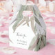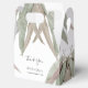 This design features rustic eucalyptus leaves. The eucalyptus greenery is complimented by elegant black typography. The dusty green tones of the eucalyptus leaf create a rustic country woodland garden feel. Elegant wedding bomboniere favor box design with modern elements. Matching wedding invitations and other stationery items are also available.