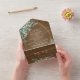 This rustic boho eucalyptus all-in-one wedding invitation includes the invitations itself, and a tear-away RSVP postcard for ease of return by your guests. No envelope is needed for mailing, but if you wish you can add on plain white envelopes. Bouquets of eucalyptus leaves decorate the gold geometric frame, with the text in modern elegant fonts, and a rustic brown barn wood background.