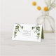 This design features rustic eucalyptus leaves. The reverse of the place card showcases the bride and grooms names and wedding date. The dusty green tones of the eucalyptus leaf create a rustic country woodland garden feel. Elegant wedding place card design with modern elements. Matching wedding invitations and other stationery items are also available. Easy to personalize with your details. Hand write your guest names and table number in the space provided.