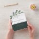 This modern wedding invitation with its watercolor eucalyptus leaves can be personalized with details of the event.