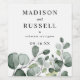 Elegant and rustic eucalyptus greenery on bottom wine label in classic typography for weddings, anniversary or any special occasions.