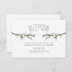 A rustic wedding reception card featuring an illustration of evergreen branches.