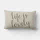 Rustic pillow with script typography "life is lovely" overlay of fabric print lumbar pillow. Great for a gift for you or someone special.