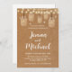 Plain white envelopes are included with paper invitations and will come to fit the invitation size you select. If you don’t need the envelopes, you may choose to not receive them by selecting the dropdown below "Envelopes" and choosing "None." If you’d like to have a design on your envelopes, you can browse all of these available envelopes to find the design that complements your Rustic Fairy Lights Wedding Invitation Mason Jar Invitation.