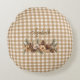Rustic Fall Botanical Brown Gingham Personalized Round Pillow