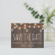 Rustic Fall Lights & Leaves Save the Date Announcement Postcard - featuring mason jar lights filled with twinkling fireflies with leafy garland on a barn wood background. The perfect Save the Date announcement for the couple who love the rustic style. Save the Date will be part of a collection.