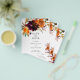 Rustic boho floral budget wedding save the date flyer featuring a watercolor painted floral bouquet with warm and earthy shades of burnt orange, terracotta and deep burgundy along with some greenery. This elegant Save the Date with the rich shades of autumn is great for a fall wedding. PLEASE NOTE: Envelopes NOT included.