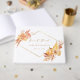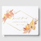 This wedding guestbook features rustic watercolor flowers and pumpkins in burnt orange, gold, terracotta, burgundy, blush, beige and brown pampas grass with a gold diamond shape frame. For more advanced customization of this design, please click the "customize further" link. Matching items are also available.