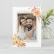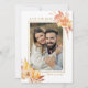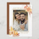 This photo save the date flat card features rustic watercolor flowers and pumpkins in burnt orange, gold, terracotta, burgundy, blush with beige and brown pampas grass. For more advanced customization of this design, please click the "customize further" link. Matching items are also available.
