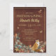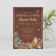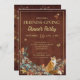 Rustic Fall watercolor leaves, foliage, and acorns artfully arranged into a comfy resting area for a beautiful fox to stop and enjoy the Fall weather. Colors are soft, muted, forest colors against a faded brown background with a thin yellow accent stripe. Fill in your information using the easy to use template provided. Reverse side of invitation is a pattern of fall leaves. If you need any assistance with personalization, please feel free to send me a message here on Zazzle. Be sure to browse around our shop as there are other coordinating items too.