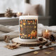 This sticker is a celebration of fall, a rustic design that feels like a cozy cabin door framed by a cascade of hand-painted leaves in soft gold, burnt orange, and brown hues. A plump, sun-kissed pumpkin sits in the corner, a cheerful sentinel of the season. The center panel, crafted to look like dark wood, is your canvas for customization.