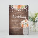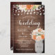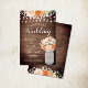 This affordable wedding design features a mason jar vase filled with fall florals in coral/orange and cream with baby's breath on a rustic wood background with string lights. Click the customize button for more flexibility in modifying the text. Variations of this design, different paper types, as well as coordinating products are available in our shop, zazzle.com/store/doodlelulu. Contact us if you need this design applied to a specific product to create your own unique matching item! Thank you so much for viewing a DoodleLulu by 2 june bugs design!