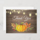 Rustic Watercolor Fall Pumpkin Autumn Thank You card. Rustic Wood Background. Country Vintage Retro Barn. String Lights. Love and Thanks, beautiful script font. Add your message on back or leave blank and hand write. For further customization, please click the "Customize it" button and use our design tool to modify this template.