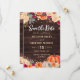 Rustic Fall Orange Pumpkin floral design with orange and red flowers on a dark brown wood background
