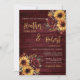 Rustic Fall Sunflower Burgundy Wedding Invitation