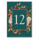 Rustic Fall Table Number. Add a luxe autumn touch to your reception with these table numbers, featuring shimmering copper-toned watercolor leaves set against a deep teal backdrop. The warm palette features accents of terracotta, burnt orange, and cream florals, creating a beautifully balanced fall look. Whether you're styling long farm tables or round reception tables, these numbers tie your theme together effortlessly. Customize each one for a flawless finish.