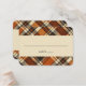 Rustic Fall Vibes Burnt Orange Plaid Print Autumn Place Card
