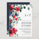 Rustic fall winter red navy blue floral wedding invitation