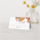 Wedding escort / place card design features a fall theme with saturated fall foliage and scrolling swirls. Colors include orange, copper, brown, red and gold.