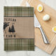 Beautiful, rustic themed kitchen towels, featuring your family name and cabin, lodge, cottage or other desired text and its established date. This unique, custom design features a silhouette of a bull moose and pine trees on a burlap style print, accented with beautiful French country plaid in soft shades of grass and sage green. To see more designs like this, feel free to visit my store here at "Zazzle.com/Rustic_Charm". Thanks.