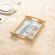 This lovely serving tray shows a peaceful and gentle scene -- it is rustic and natural in tone, with the family monogram and name. Any design questions just email charmdesignstudio@rcn.com and we'll be delighted to assist.