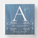 Rustic Family Monogram Dark Blue Wood Flourish Wooden Box Sign