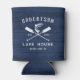 Rustic Family Name Lake House Navy Blue Wood Can Cooler