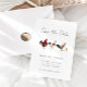 Rustic save the date card featuring illustration of chickens and a chick.