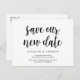This is the Wedding party or any celebration invitation Rescheduled (postponed / postponement) postcard (save our new date), in modern rustic farm design themed, Black font. It is the perfect and best way to make the event reschedule announcement to your family and friends.