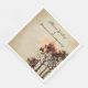 These rustic and romantic Autumn wedding napkins feature a vintage, parchment paper style background. A watercolor style image of Fall trees and a well is pictured in the bottom right, accented with fallen leaves. It's perfect for a cozy wedding in the woods.
