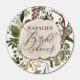 Rustic wedding botanical and wood slice bridal shower design. With beautiful watercolor foliage, white florals, wood slice and script hand writing. This modern design is sure to set the style for your upcoming shower.