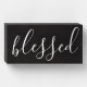 Custom farmhouse wall art with BLESSED text on a faux chalkboard background. Customize It with your own text and images to create a unique one of a kind sign.