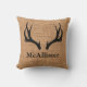 Rustic Farmhouse Cabin Deer Antlers Family Name Throw Pillow