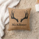 A rustic farmhouse cabin-style deer antlers pillow with the option to add your family name to make it unique.